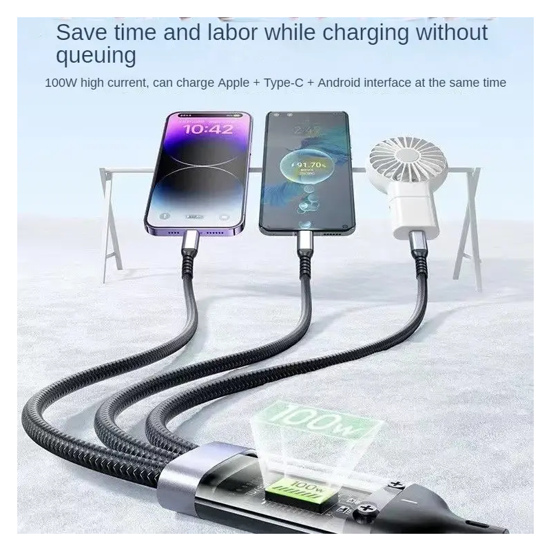 3 in 1 USB Cable 100W Multi-function Charging Wire for Iphone Android USB C Charger Charging Line PD 27W - DND - PID3